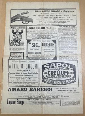 - Ampia sezione pubblicitaria d'epoca: Banca Credito Commerciale, Liquore Strega, Distilleria Canciani, e Sapol Bertelli.