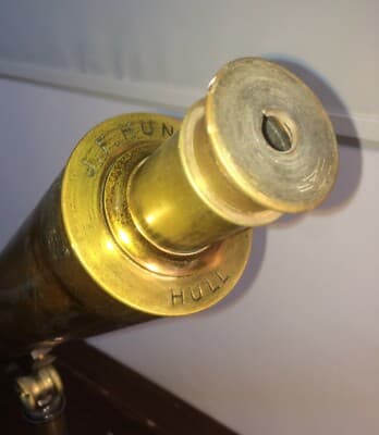 Ottica Antico Cannocchiale J.F. Hunt Hull Ottone E Ferro Firmato
