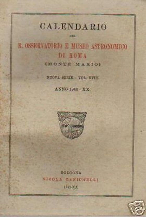 Calendario Osservatorio Astronomico Roma Monte Mario 1942 Zanichelli