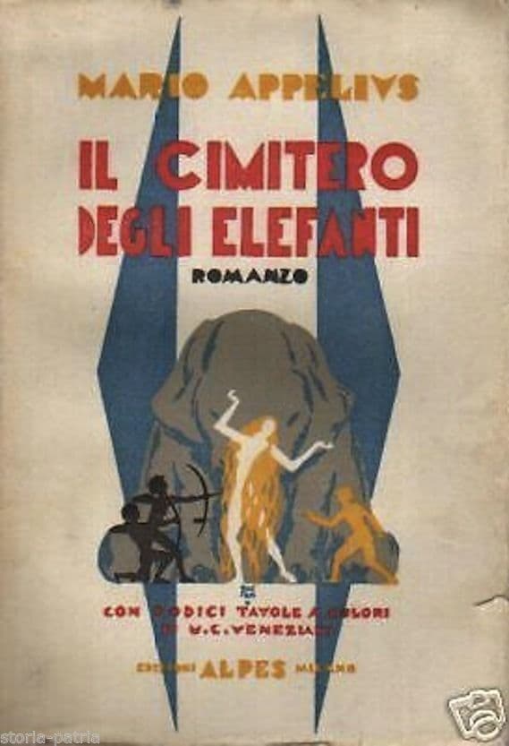**Mario Appelius** Il cimitero degli elefanti Milano, Alpes, 1928. Cm.20, pp. 330, bross.edit. figurata (difetti). Splendido volume del celebre narratore, già autore di altre famose opere su viaggi in vari Paesi orientali. Ampia e articolata la trattazione, impossibile da sintetizzare, ma con riferimento all'Africa misteriosa, in una regione nei pressi del Congo, dove sopravvivono riti e miti millenari,......una cronaca e un affresco della natura equatoriale. Tra i numerosi nomi citati, anche le città siciliane di Catania e Messina, essendo siciliano uno dei protagonisti. Edizione di gran pregio, arricchita dalle tavole illustrative dell'artista **Veneziani** tratte da sua acquaforti e con splendida copertina litografata a colori dello stesso Veneziani. Opera di grande interesse culturale, storico antropologico e geografico Buona conservazione generale, usuali segni d'uso o d'epoca, difetti e strappetti marginali alle copertine. Creato da [Turbo Lister](https://pages.ebay.it/turbo_lister/)
