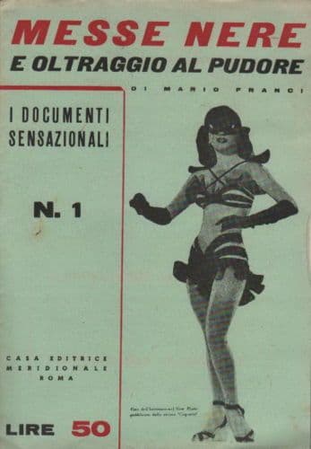 Mario Franci Messe nere e oltraggio al pudore Roma, Casa Ed. Meridionale, 1947 Cm. 24,5; pp. 24; bross. edit. figurata. Interessante antica e rara edizione originale e d'epoca, pubblicazione illustrata da numerose immagini fotografiche, il primo dei "Documenti sensazionali" ossia di una serie di pubblicazioni inerenti vari aspetti della cronaca dell'epoca, (altre pubblicazioni di questa serie affrontano tematiche che spaziano dai lati oscuri della guerra, alla corruzione londinese, alla Guaiana francese, all'esibizionismo delle donne, ai campi nudisti, ai vizi della vita parigina,...); in particolare questo fascicolo affronta la tematica del pudore e dell'osceno, così come veniva contemplato dalla giurisprudenza e dal codice penale, e con una serie di esempi mostra immagini di donne in pose e in costumi che potrebbero essere cagione di oltraggio al pudore, ma che comunque l'autore espone avvalendosi di citazioni in cui specifica che le immagini apparvero su libri e riviste dell'epoca ma senza che vi fossero state conseguenze penali; alcune di queste immagini sono tratte da un giornale scandalistico dell'epoca, "Mascotte", ma vi sono anche immagini fotografiche "artistiche" ossia nudi artistici e apparse su edizioni di interesse fotografico; come pure immagini di donne africane a seno nudo; ma all'interno vi sono anche stralci da annunci dell'epoca, annunci relativi alla ricerca di un'anima gemella, e tra questi cita quello di uno studente siciliano (di Modica), di un genovese, ... e l'autore conclude la sua inchiesta affermando e deducendo che: *siamo nel pieno di una campagna contro l'immoralità;* *la lotta è condotta con zelo non solo dalle autorità ma anche dal pubblico;* *non vi è modo di conoscere con esattezza la linea di demarcazione che divide il lecito dall'illecito.* Con numerose immagini illustrative Opera di gustosa lettura *e di interesse culturale giuridico fotografico bibliografico* *rarissimo, **un solo esemplare noto** nel sistema bibliotecario nazionale italiano* Buona conservazione generale, usuali segni o difetti d'uso o d'epoca; si allega anche l'originale fascetta in carta che teneva chiuso il fascicolo, e sulla fascetta si legge pure che **la vendita della pubblicazione era vietata ai minori di 18 anni.**