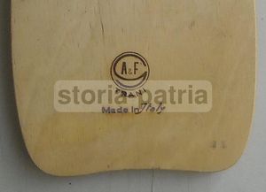 Al verso è presente il marchio di fabbrica impresso di un'azienda pugliese: "A & F / Trani". L'oggetto è in buone condizioni generali di conservazione, con normali segni d'uso e del tempo, lievi abrasioni e usure marginali visibili nelle immagini. Nella parte superiore posteriore è presente un foro per l'affissione.