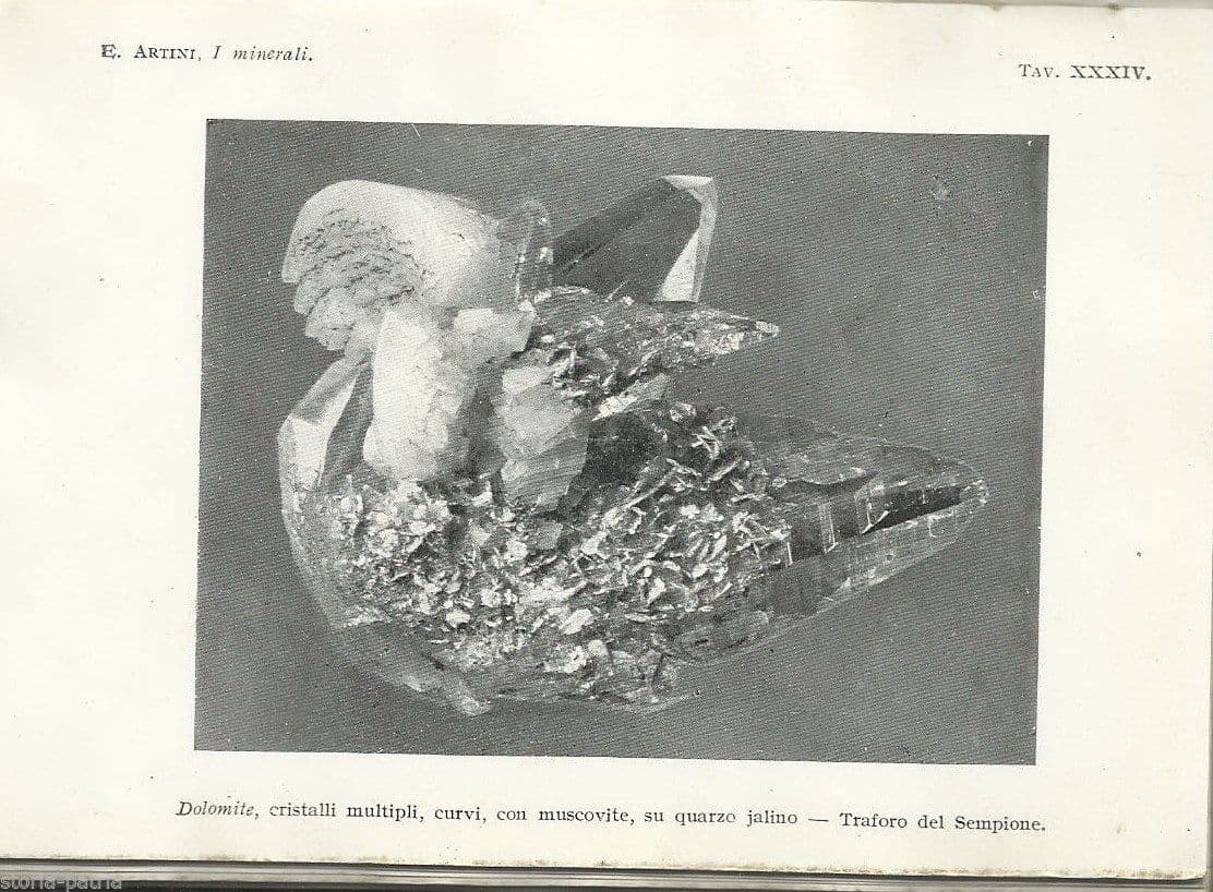 E. Artini **I minerali** Milano, Hoepli, 1934 Cm. 15,5; pp. 593; telato editoriale (sciupato) Interessante edizione antica e d'epoca, specialistica opera apparsa nella nota manualistica dell'editore milanese Hoepli, con trattazione inerente: *Mineralogia generale: proprietà morfologiche, cristalli, misura degli angoli, simboli delle facce, legge delle zone, calcolo delle costanti, simmetria, singonia, geminati, meroedria, mimesia, struttura dei cristalli, imperfezioni e inclusioni estranee, aggregati cristallini, sostanze vetrose, colloidi, ....* *Proprietà fisiche dei minerali: proprietà termiche, scalari magnetiche, elettriche, ottiche, ...prisma di Nicol, polarizzazione rotatoria, pleocroismo, superficie di Fresnel, ....* *Proprietà chimiche dei minerali: polimorfismo, simmorfismo, saggi chimici, formazione e alterazione dei minerali, ...* *Giacitura dei minerali: rocce,...* *Mineralogia descrittiva: metalloidi, metalli fragili, solfuri, aloidi, ossidi, alluminati, solfati, cromati, tungstati, molibdati,...* *Sali di acidi organici* *Idrocarburi* *Carboni fossili* *....* *con numerose figure illustrative nel testo e ricco apparato di tavole fuori testo, inserite a fine volume (ossia "251 incisioni e 48 tavole fototipiche")* Di interesse specialistico, mineralogico, geologico, fisico, chimico, bibliografico, collezionistico Discreta conservazione generale, segni e difetti d'uso o d'epoca, sparse fioriture e annotazioni e sgualciture o difetti vari marginali, legatura un pò allentata e con sgualciture o usura o scolorimenti marginali, comunque complessivamente opera di specialistica lettura e di interesse anche collezionistico, oltre che manuale utilissimo al collezionista e studioso di geologia e mineralogia.