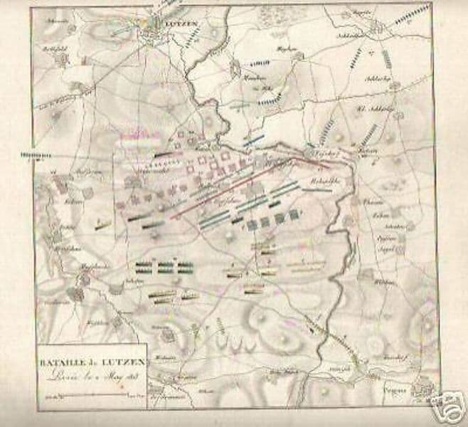 Mappa Battaglia Di Lützen 1813 Napoleonica Antica Incisione