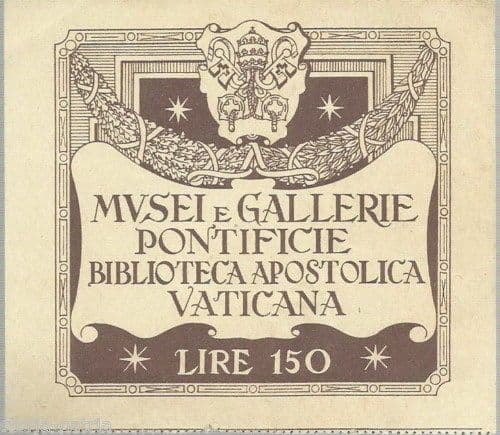 Biglietto Ingresso Biblioteca Apostolica Vaticana 1952 Lire 150