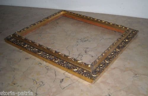 Decorativa cornice d'epoca esemplare con artistica e raffinata decorazione a motivi vari vegetali, di bell'effetto decorativo, *utile per inserirci dipinti o tempere o gouache o disegni o incisioni e stampe, ma anche ricami e altre opere d'arte sia antiche che moderne,* *ma utilizzabile anche come specchiera, inserendoci uno specchio;* ovunque collocabile, sia in orizzontale che in verticale; ottime graziose dimensioni, misura circa cm.38,5x33,5 (massime dimensioni esterne), circa cm.30,5x25,5 (dimensioni dell'interno o luce); supporto in legno con usuale decorazione dorata a pastiglia dorata, databile presumibilmente alla metà del '900. [https://img39.imageshack.us/img39/8716/cornice266c.jpg](https://img39.imageshack.us/img39/8716/cornice266c.jpg) [https://img40.imageshack.us/img40/2958/cornice266d.jpg](https://img40.imageshack.us/img40/2958/cornice266d.jpg) [https://img839.imageshack.us/img839/7081/cornice266a.jpg](https://img839.imageshack.us/img839/7081/cornice266a.jpg) [https://img43.imageshack.us/img43/3963/cornice266ee.jpg](https://img43.imageshack.us/img43/3963/cornice266ee.jpg) Utile decorativa e da collezione Buona conservazione generale, segni e difetti d'uso e d'epoca, usuali abrasioni o ossidazioni, salti di gessatura dorata lungo un borso laterale e piccoli difetti marginali o agli angoli, ma difetti facilmente restaurabili, il tutto così come dalle immagini allegate, così come rinvenuta in una vecchia soffitta di famiglia *(le immagini allegate raffigurano particolari dell'intero oggetto, eventuali ulteriori informazioni a richiesta)* *(266)* [](https://img39.imageshack.us/i/cornice266c.jpg/) [](https://img40.imageshack.us/i/cornice266d.jpg/) [](https://img839.imageshack.us/i/cornice266a.jpg/) [](https://img43.imageshack.us/i/cornice266ee.jpg/)