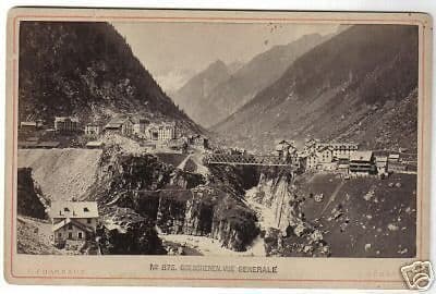 **Goeschenen** Vue Generale Rara antica fotografia originale eseguita dal fotografo svizzero **F. Charnaux** Geneve Bella immagine, molto nitida, databile fine '800, montata su cartoncino con stampa litografica al verso, con le medaglie vinte dal fotografo alle varie esposizioni internazionali Cm. 11x16,5 Di interesse storico documentario paesaggistico e fotografico oltre che bibliografico e collezionistico. Buona conservazione generale, usuali segni d'uso o d'epoca. $$$$$$$$$$$$ Guarda le altre mie aste! \>>Tutte le mie offerte sono garantite originali e d'epoca<<