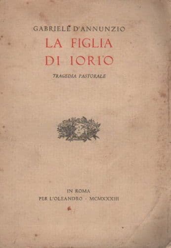 Gabriele d'Annunzio La figlia di Iorio Roma, L'Oleandro, 1933 Cm.20,5; pp.177; bross. edit. (sciupata) Interessante edizione antica e d'epoca, relativa ad una delle opere più celebri del noto autore abruzzese, che ivi celebra la rivisitazione dell'Abruzzo, in maniera tuttavia non naturalistica: qui un mondo selvaggio, deliberatamente collocato fuori del tempo e dello spazio mediante la trasfigurazione degli originali luoghi d'ispirazione (Taranta Peligna e il suo circondario) viene assunto come l'esemplare bacino dei grandi conflitti mitico-archetipali: padre-figlio, pastore-contadino, coscienza- legge, infrazione- rito, "diverso"- tribù, (si noti che la protagonista addensa più tratti dell'emarginazione: è forestiera, è di liberi costumi, pratica la stregoneria); *la menzione di qualche canzone popolare, per la quale potè giovarsi della collaborazione dell'antropologo e studioso di folklore abruzzese Antonio De Nino, non contraddice l'arcaica letterarietà perseguita sul modello di antiche laudi religiose.* *Opera dedicata a stampa:* *Alla terra d'Abruzzi* *alla mia madre alle mie sorelle* *al mio fratello esule al mio padre sepolto* *a tutti i miei morti a tutta la mia gente* *fra la montagna e il mare* *questo canto* *dell'antico sangue* *consacro* Opera di interesse culturale, letterario, storico-locale, folklorico, bibliografico Buona conservazione generale, segni e difetti d'uso e d'epoca, diffuse fioriture, piegature sgualciture strappetti e difetti vari alle copertine e al dorso della brossura, interno ben conservato e su buona carta, legatura un pò allentata opera eventualmente meritevole di rilegatura.