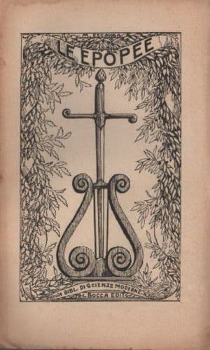 Miguel Escalada Le epopee .... Torino, Bocca, 1926 Cm.20,5; pp. 218; bross. edit. figurata. Interessante edizione antica e d'epoca, opera apparsa nella nota collana di scienze moderne del noto editore torinese Bocca, impressa nello stabilimento tipografico Capella (Ciriè), con la traduzione a cura del prof. Alfredo Gerardi de' Carriero, edizione dedicata al Conte Teofilo Rossi di Montelera, all'epoca Senatore del Regno... con vasta trattazione di cui ovviamente è impossibile dare una sintesi adeguata, ma anche per essere il libro ancora a fogli chiusi, per cui estrapolando dagli indici evidenziamo i seguenti capitoli e argomenti: *Il ciclo indiano* *L'Iliade* *L'Eneide* *La Gerusalemme liberata* *Kalevala* *I Nibelungi* *Fanciulli e vecchi della Bibbia* *I Lusiadi* *La Divina Commedia* *Don Chisciotte* Edizione di interesse culturale specialistico storico letterario bibliografico Buona conservazione generale, usuali segni o difetti d'uso e d'epoca, volume ancora a fogli chiusi, bella illustrazione allegorica o simbolica in copertina.