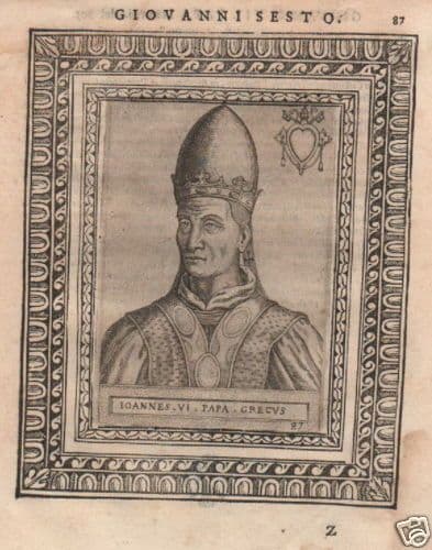 Papa Giovanni VI Incisione Antica Originale Fine 500 Con Stemma