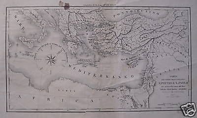 Mappa Viaggi Apostoli Pietro E Paolo Mediterraneo 1800 Incisione