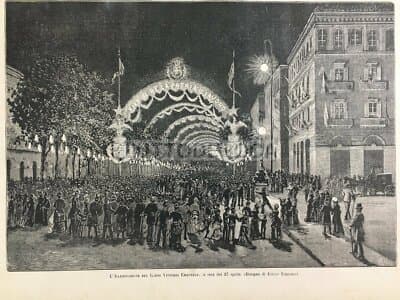 **Federico Faruffini** (1833-1869). *Certosa di Pavia*. Incisione all'acquaforte originale del 1866 intitolata "A La Chartreuse De Pavie". L'opera raffigura l'interno del complesso monumentale con un frate in preghiera davanti all'altare, evidenziando i dettagli degli arredi ecclesiastici. * **Autore**: **Federico Faruffini**. * **Editore**: **Cadart** (Parigi), stampatore **Delatre**. * **Tecnica**: Acquaforte su carta vergellata filigranata. * **Dimensioni**: Foglio 36x55,5 cm ca; battuta del rame 23,5x31 cm. * **Stato di conservazione**: Discreto. Presenza di fioriture, bruniture e segni d'uso marginali.