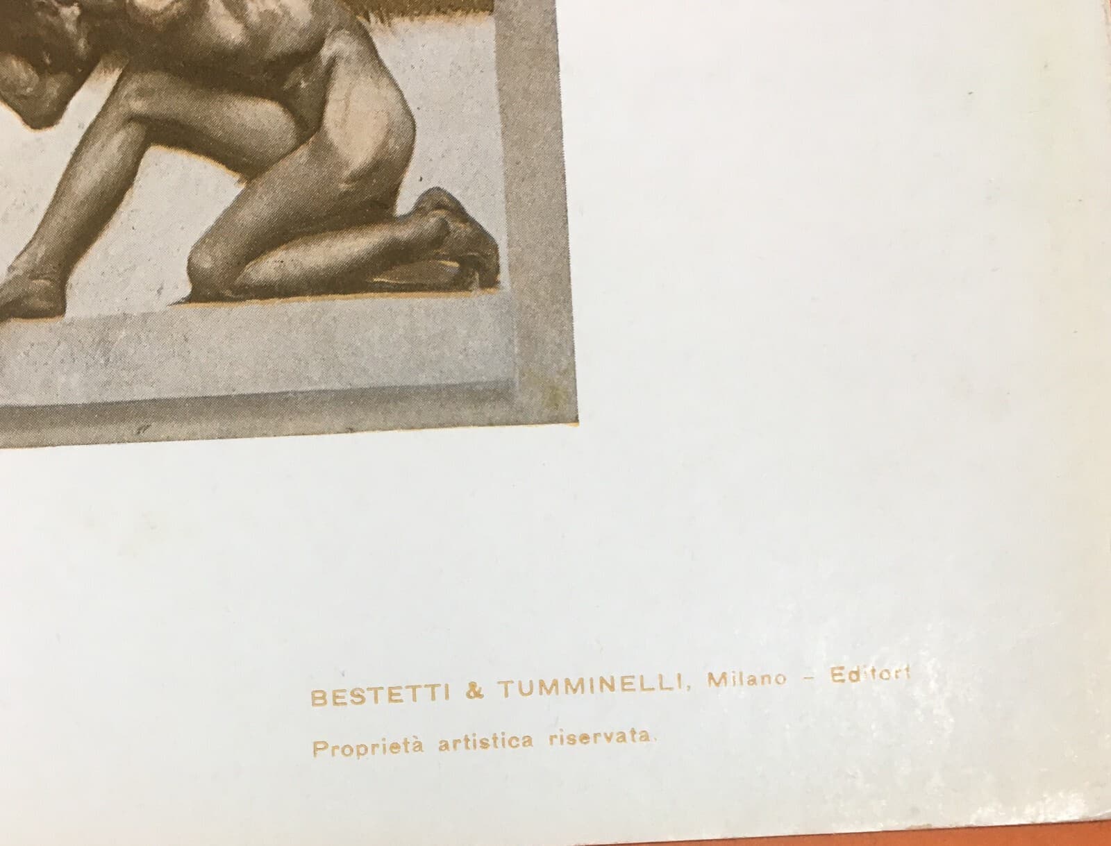 Interessante e decorativo soprammobile d'epoca, caratterizzato da una placchetta circolare centrale raffigurante l'iconografia di **Sant'Antonio da Padova**. La composizione include i tradizionali gigli alla base e una veduta prospettica del santuario padovano sullo sfondo. * **Dimensioni**: l'intero oggetto misura circa 8,5 x 8,8 cm; la placchetta centrale ha un diametro di circa 6,5 cm. * **Tecnica**: sbalzo e incisione su metallo giallo (probabile ottone). * **Supporto**: dotato di sostegno posteriore originale in cartone per esposizione da tavolo, adattabile per affissione a parete. * **Epoca**: databile alla prima metà del XX secolo (circa anni '20-'30). L'oggetto si presenta in discreta conservazione generale, con segni d'uso e del tempo quali ossidazioni diffuse, lievi abrasioni e usura marginale. Il supporto posteriore mostra difetti d'epoca; l'esemplare è meritevole di una delicata lucidatura.