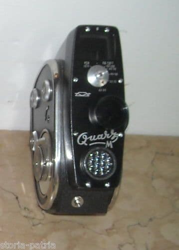 Quarz M Interessante vecchio apparecchio cinematografico, *cinepresa d'epoca e da collezione, utile per ottenere filmati amatoriali o forse anche professionali;* di ottima compattezza, guscio metallico di interessante design, e con manico di supporto estraibile, il tutto così come mostrato nelle immagini allegate; misura circa cm.14x12x6 circa (dimensioni del solo corpo della cinepresa, escluso il manico o impugnatura); probabilmente di fabbricazione russa (all'interno vi è stampigliato "USSR"); databile presumibilmente alla metà del '900. [https://img834.imageshack.us/img834/898/cinepresa7bb.jpg](https://img834.imageshack.us/img834/898/cinepresa7bb.jpg) [https://img824.imageshack.us/img824/7498/cinepresa7ee.jpg](https://img824.imageshack.us/img824/7498/cinepresa7ee.jpg) [https://img577.imageshack.us/img577/3508/cinepresa7mm.jpg](https://img577.imageshack.us/img577/3508/cinepresa7mm.jpg) [https://img109.imageshack.us/img109/9028/cinepresa7aa.jpg](https://img109.imageshack.us/img109/9028/cinepresa7aa.jpg) [https://img593.imageshack.us/img593/5425/cinepresa7mo.jpg](https://img593.imageshack.us/img593/5425/cinepresa7mo.jpg) [https://img9.imageshack.us/img9/4117/cinepresa7o.jpg](https://img9.imageshack.us/img9/4117/cinepresa7o.jpg) Di interesse specialistico, fotografico, cinematografico, tecnico, collezionistico Buona conservazione generale, segni e difetti d'uso e d'epoca, così come da immagini allegate, così come rinvenuta in una vecchia collezione di famiglia, con anche una borsa con tracolla utile per il trasporto (in materiale similpelle); non presenti accessori, non verificata la funzionalità e pertanto non garantita l'integrità e la funzionalità, eventualmente meritevole di pulitura e revisione. *(le immagini allegate raffigurano alcuni particolari dell'intero oggetto, eventuali ulteriori informazioni a richiesta)* [](https://img834.imageshack.us/i/cinepresa7bb.jpg/) [](https://img824.imageshack.us/i/cinepresa7ee.jpg/) [](https://img577.imageshack.us/i/cinepresa7mm.jpg/) [](https://img109.imageshack.us/i/cinepresa7aa.jpg/) [](https://img593.imageshack.us/i/cinepresa7mo.jpg/) [](https://img9.imageshack.us/i/cinepresa7o.jpg/)