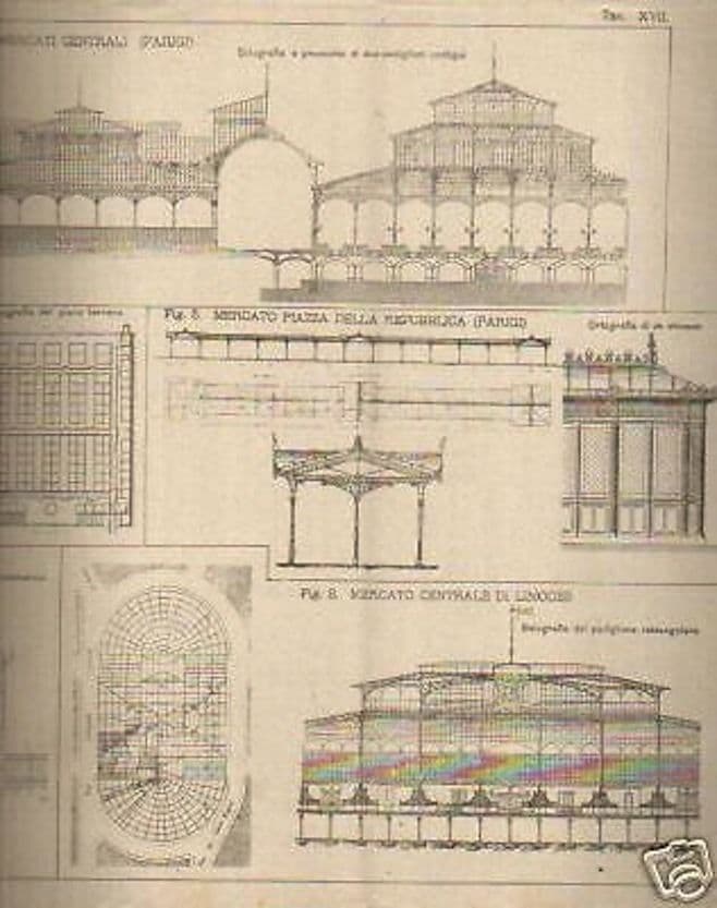 Annali della Società degli Ingegneri e degli Architetti Italiani 31 dicembre 1891 Roma, Centenari, 1891 Cm.27, pp.( da pp. 141 a pp.160 e da pp.419 a pp. 498); bross. edit. (sciupata) Interessante edizione originale antica e d'epoca, pubblicazione periodica, specialistica di ingegneria, architettura, edilizia, e altre attività affini tecnico scientifiche, *organo della Società degli Ingegneri, e pertanto ricca di tutte le informazioni necessarie al miglior svolgimento della professione;* e pertanto, usualmente o di frequente vi contiene una parte generale dove sono tutte le notizie sull'attività associative, dalle assemblee alle norme giuridiche, all'elenco degli aderenti associati,.... a cui segue la parte tecnica specialistica vera e propria, con scritti e ricerche nel campo ingegneristico, edilizio, ferroviario, meccanico, ....; in questa specifica pubblicazione la parte tecnica è inerente ai seguenti studi: *Influenza della velocità d'arrivo sulla portata degli stramazzi a contrazione completa* *Per i mercati coperti* *Il nuovo mattatoio e mercato del bestiame della città di Roma* *Derivazione dell'acqua dal fiume Ticino per dotare Pavia di forza motrice* *Ferrovia elettrica Buda-Pest-Vienna* *Strade ferrate italiane nel 1890-91* *Ferrovie a dentiera del sistema Abt* Atti della Società Il testo è integrato da alcune tavole ripiegate, delle quali due, molto decorative, mostrano i progetti di alcuni mercati coperti francesi (Parigi, Limoges, Angers, Alençon, Nangis, Grenoble, ...) tavole anche decorative e meritevoli pure di essere eventualmente incorniciate distintamente Opera di interesse tecnico scientifico specialistico ingegneristico architettonico storico-locale bibliografico Buona conservazione generale, segni e difetti d'uso o d'epoca, fioriture sparse, strappi alle copertine, difetti vari marginali, eventualmente meritevole di rilegatura.