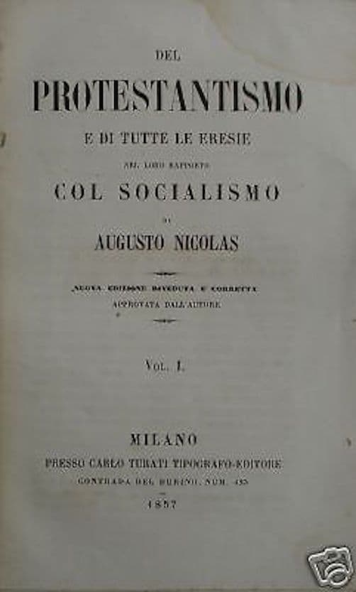Protestantesimo E Socialismo Di Augusto Nicolas Milano 1857
