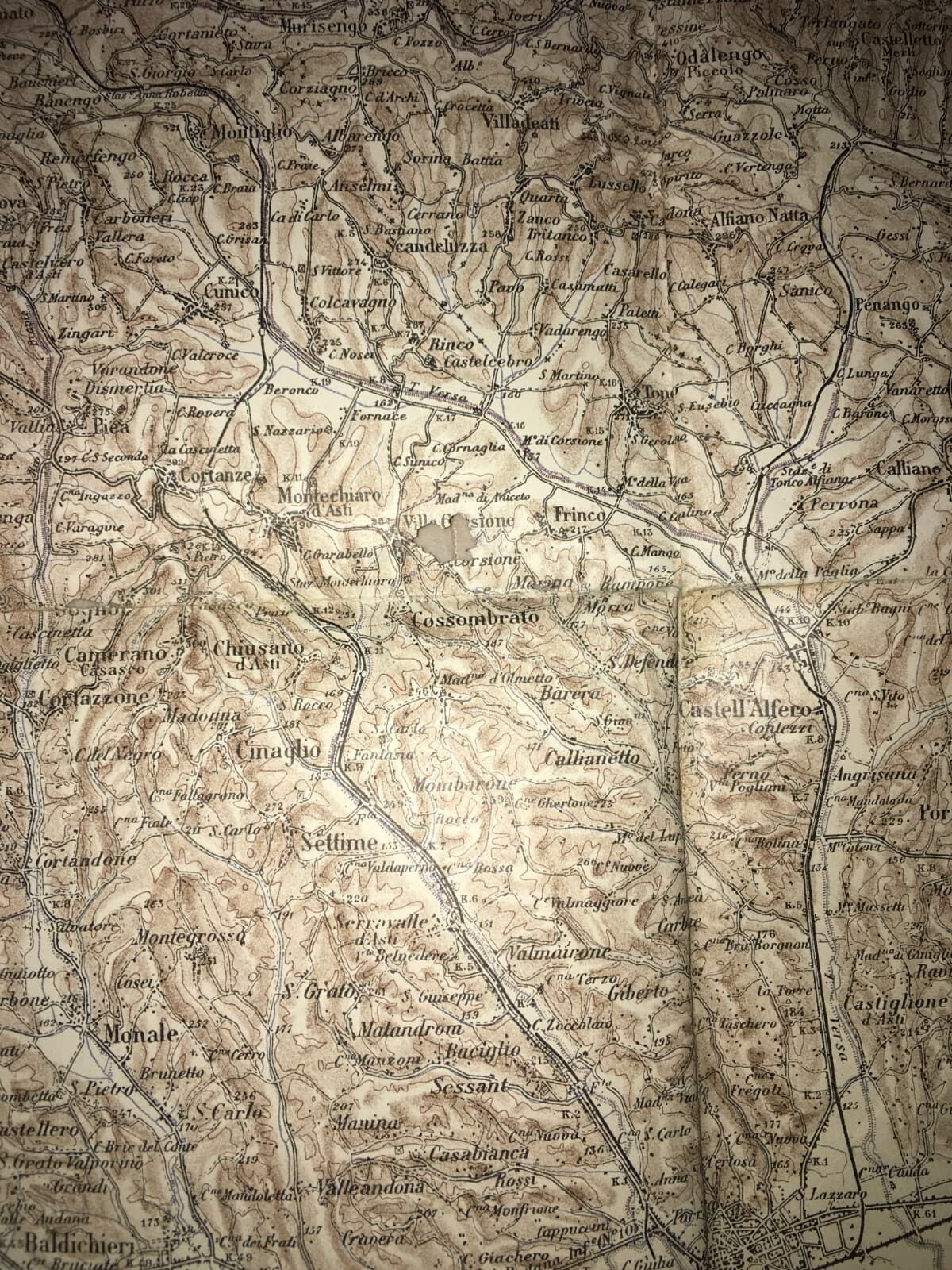 **Milano**: *Piazza del Duomo*. Interessante e decorativo quadretto d'epoca, realizzato utilizzando una cartolina illustrata a colori dell'inizio del Novecento. L'immagine ritrae l'animatissima piazza del Duomo di Milano, con vedute dell'antico monumento, dei palazzi circostanti e della piazza popolata da viandanti e tram d'epoca. L'opera è presentata sotto un vetro sagomato romboidale con pittura al verso (sottovetro), in pieno gusto **Liberty**. L'oggetto è stato concepito originariamente come souvenir per turisti o villeggianti. * **Dimensioni**: circa 15x15 cm. * **Epoca**: primo Novecento (circa 1900-1915). * **Tecnica**: stampa cromolitografica su supporto cartaceo inserita in cornice sottovetro dipinta. **Condizioni**: stato di conservazione modesto; presenti segni e difetti d'uso tipici dell'epoca, tracce di polvere e abrasioni superficiali. Si segnalano i fisiologici salti di colorazione della pittura sottovetro dovuti al tempo. Presente il cordoncino originale per l'affissione.