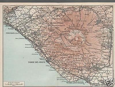 Antica Mappa Napoli Vesuvio Pompei Torre Del Greco Anni '20