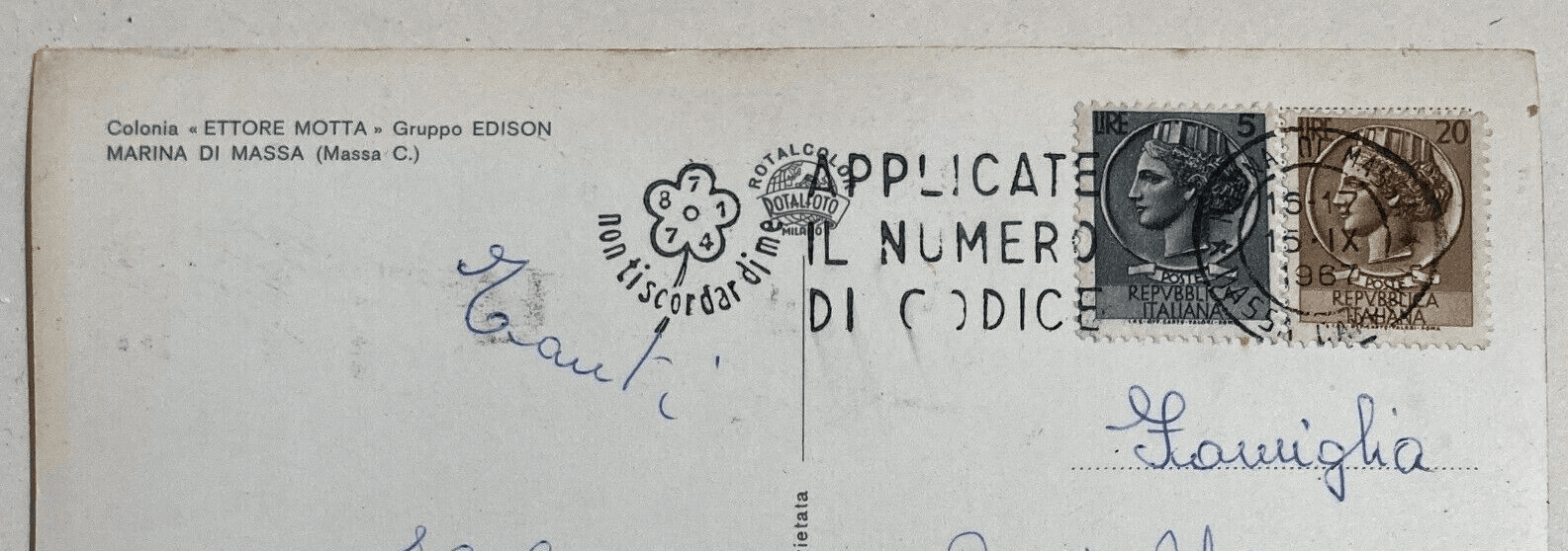 Marina Di Massa: Colonia Motta Edison. Foto Cartolina d'Epoca A Colori Viaggiata
