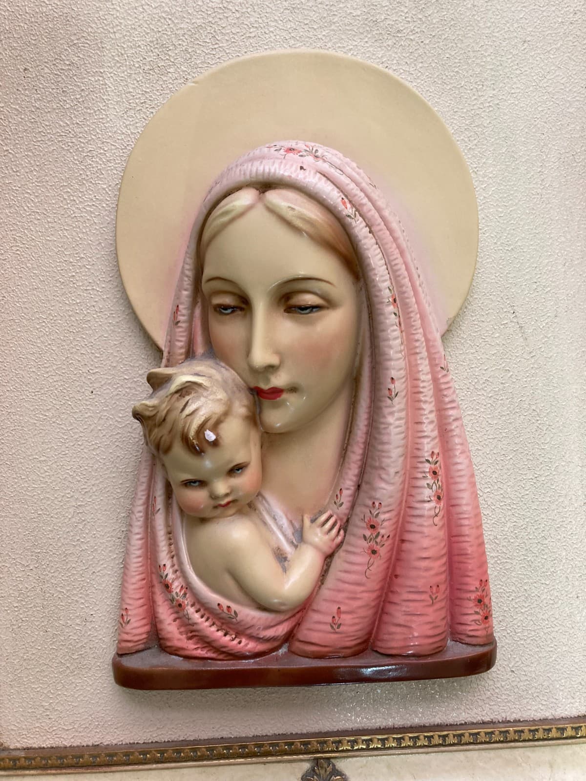 Interessante opera d'arte decorativa costituita da una mattonella in ceramica con dipinto raffigurante una natura morta quasi informale. - **Autore/Fabbrica**: Attribuibile alla manifattura siciliana **Fratantoni** di *Santo Stefano di Camastra*. - **Tecnica**: Dipinto su fondo smaltato bianco. - **Dimensioni**: circa 20x20 cm. - **Epoca**: Seconda metà del Novecento (circa anni '70). - **Firma**: Presente in basso al centro, parzialmente leggibile. - **Stato di conservazione**: Discreta conservazione generale; presenta segni d'uso, tracce di polvere e abrasioni marginali. L'opera è inserita in una cornice lignea laccata sottile.