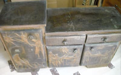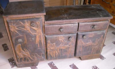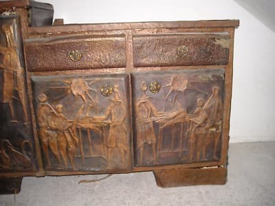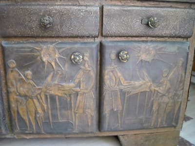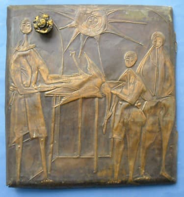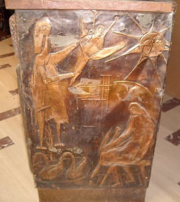 Miniatura di catapulta in argento, realizzata dalla celebre azienda aretina **Unoarre**. Il modello riproduce fedelmente un'antica macchina da guerra medievale con un meccanismo di funzionamento articolato e ingranaggi mobili. Il pezzo poggia su una base modellata per simulare le travi di legno tipiche delle strutture d'assedio storiche. * **Materiale**: Argento (marchio **Unoarre**). * **Dimensioni**: circa 95 x 110 x 120 mm. * **Epoca**: Seconda metà del '900 (circa anni '60-'70). * **Località**: *Arezzo*, Toscana. L'oggetto si presenta in discrete condizioni generali, con segni d'uso e d'epoca, tracce di polvere e diffusa ossidazione naturale che ne attesta l'autenticità. È stato precedentemente conservato in vetrina.