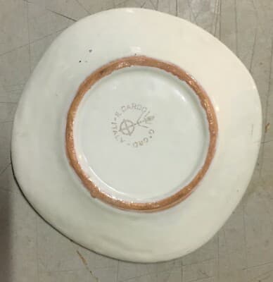 Piatto fondo in porcellana **Porcellane Karim**, caratterizzato da vivaci decori floreali policromi e un raffinato bordo dorato lungo la tesa. Il pezzo, risalente alla seconda metà del XX secolo (circa anni '60-'70), presenta il marchio di fabbrica figurato con torri, di cui quella centrale coronata. * **Dimensioni**: diametro 23 cm circa. * **Soggetto**: decorazioni botaniche e floreali di gusto folkloristico. * **Stato di conservazione**: buona conservazione generale; presenta lievi segni del tempo ma appare probabilmente mai utilizzato. * **Utilizzo**: ideale per l'allestimento di tavole eleganti o rustiche, oppure come oggetto da esposizione a parete o in vetrina.