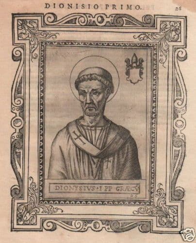Papa Dionisio I Incisione Antica Acquaforte XVI Secolo Originale