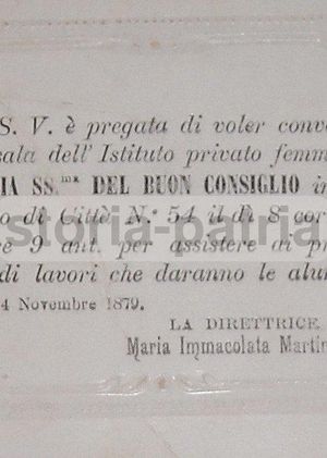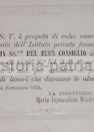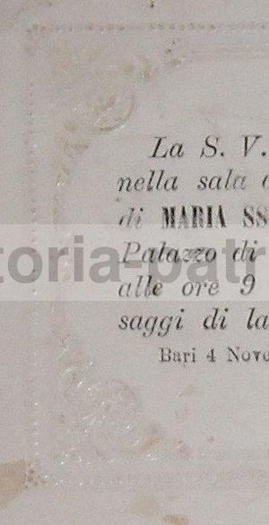 Invito Esposizione Istituto Maria SS. Del Buon Consiglio, Bari 1879