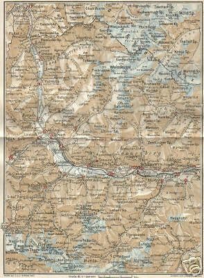 **Schlanders, Glurns e dintorni** ***Prad, Glorenza, Taufers, Tannas, Evrs, Scengles, Lichtenberg, Studenro, Allitz, Kortsch, Schlanders, Vezzan, Goflan, Castelbello, Latsch, Tarsch, Sonenberg, Vauders, Silandro, Glorenza...*** **Alta Val Venosta (Bolzano, Alto Adige)** Interessante antica mappa geografica, con evidenziata anche la rete viaria locale e la conformazione geofisica del territorio. Stampata da Vallardi (Milano) nel primo '900 su disposizione del TCI per una guida turistica e di viaggio. Di interesse storico locale geografico e collezionistico Dimensione intero foglio cm. 21 x 15,5 circa; buona conservazione generale, segni o difetti d'uso o d'epoca, **meritevole di essere inserita sotto passpartout ed incorniciata.**