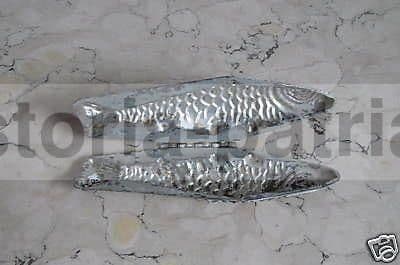 (Pesce) Interessante e decorativa, vecchia formina a forma di pesce, in latta o stagno sbalzato, utilizzata in passato per creare o modellare dolci o biscotti, utile in cucina e pasticceria; misura circa cm. 14,5x6 (astuccio chiuso); apertura incernierata; in metallo (stagno ?); databile presumibilmente alla prima metà del '900 (circa anni '30 ?) Di interesse decorativo e collezionistico Discreta conservazione generale, segni e difetti d'uso e d'epoca, diffuse ossidazioni e difetti vari marginali e così come visibili nelle immagini allegate, meritevole eventualmente di pulitura o lucidatura. *(le immagini allegate raffigurano alcuni particolari dell'intero oggetto, eventuali ulteriori informazioni a richiesta)*
