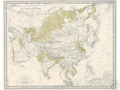 Carta Geografica Asia 1869 Prospetto Oro Idrografico Stieler