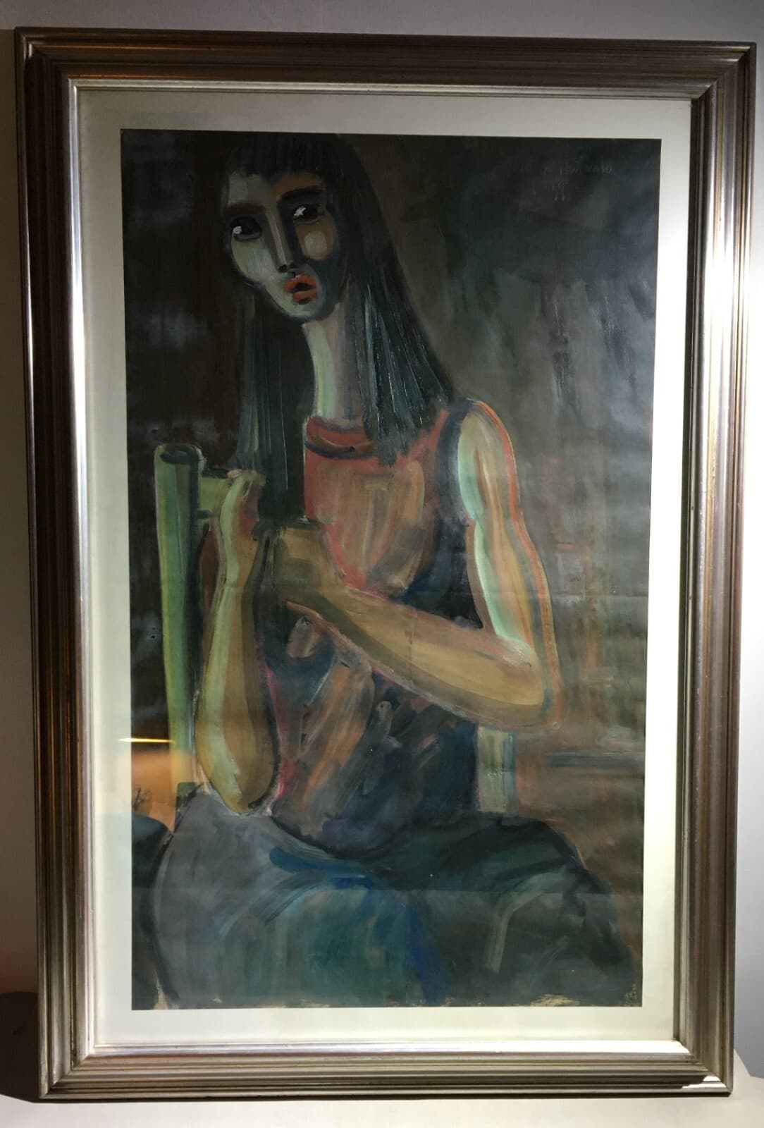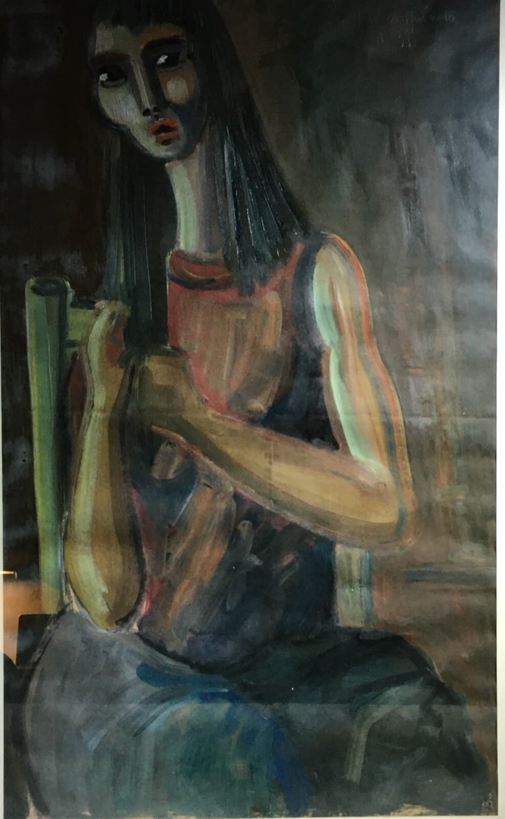 (Progetto di stipo dipinto) Interessante opera d'arte raffigurante un disegno acquarellato su carta, bozzetto preparatorio per un mobile dipinto. Lo stipo presenta ante decorate con motivi floreali e scene allegoriche con cornucopie. **Dettagli Tecnici:** * **Autore:** Artista o ebanista italiano. * **Epoca:** Prima metà del XX secolo (circa 1920). * **Tecnica:** Acquerello su carta color sabbia. * **Dimensioni:** 29x19 cm circa. **Condizione:** L'opera è in discrete condizioni generali con fioriture sparse, bruniture e sgualciture marginali. Presenti piccoli fori ai bordi dovuti alla fissazione con puntine. Verso bianco.