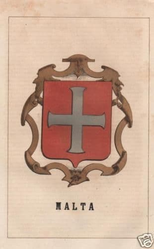 Stemma Araldico Di Malta Litografia Originale 800 A Colori