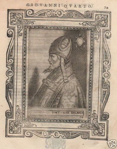 Antico Ritratto Papa Giovanni IV Incisione Acquaforte Fine 500