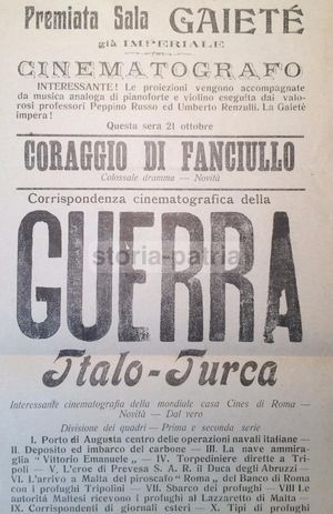 - Corrispondenza cinematografica della Guerra Italo-turca prodotta dalla Cines di Roma.