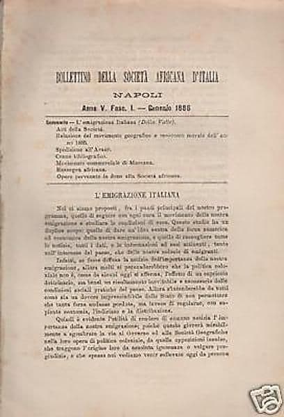 Bollettino Società Africana d'Italia Napoli 1886 Emigrazione Massaua