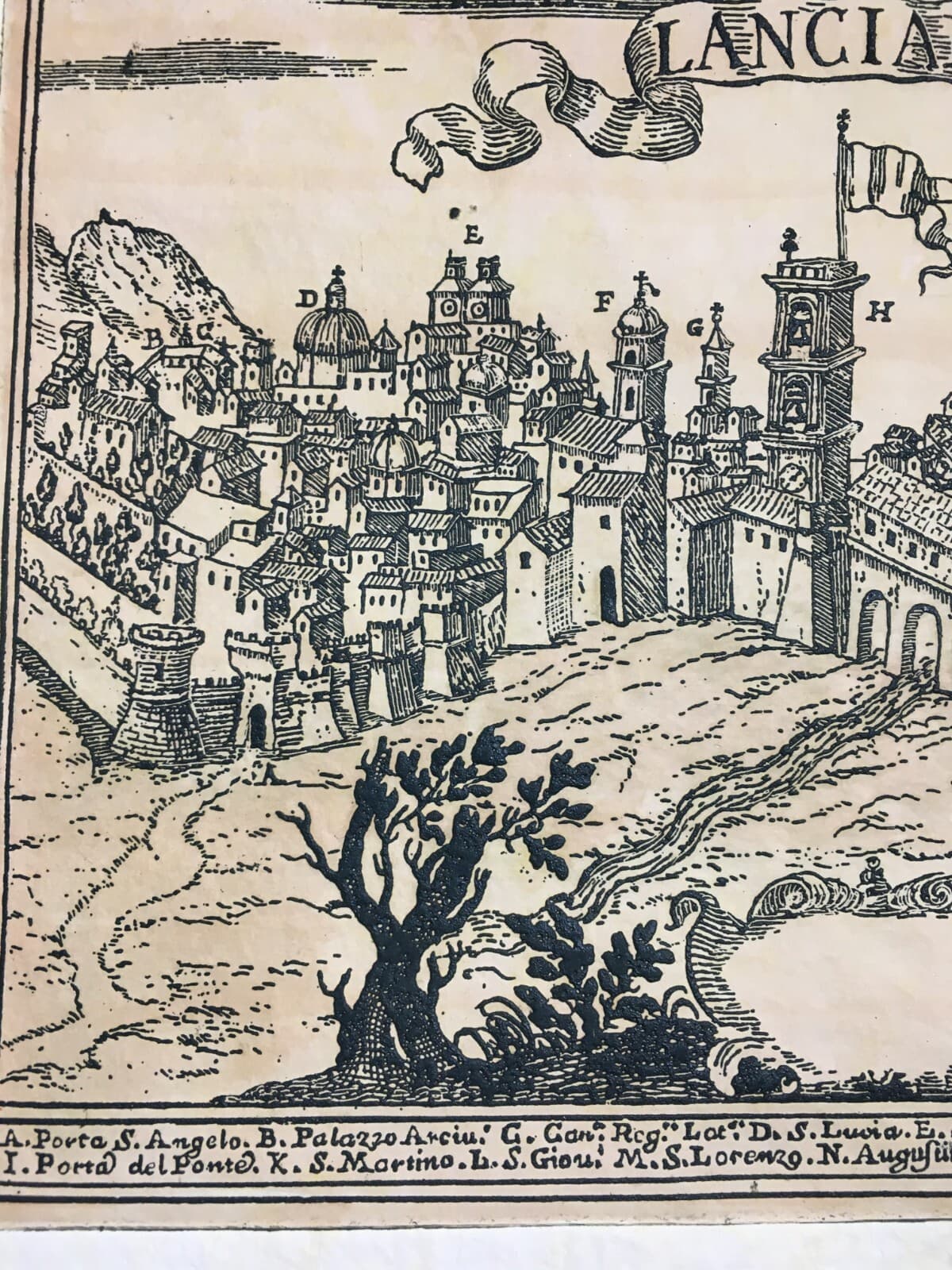 **Giovanni Huss: prigione a Costanza**. Interessante antica edizione di metà Ottocento, una suggestiva e animata veduta raffigurante il noto teologo **Jan Hus** (Giovanni Huss), imprigionato a *Costanza*. * **Autore:** G. Arnaud (disegnatore e litografo), da un dipinto di **Enrico Gamba**. * **Editore:** Fratelli Doyen, *Torino*. * **Epoca:** Circa 1858. * **Tecnica:** Stampa litografica originale su cartoncino leggero. * **Dimensioni:** Foglio cm 29,5x22,5; parte figurata cm 14,5x20. Esemplare di notevole interesse artistico e storico, probabilmente nato come tavola fuori testo per un'opera illustrata dell'epoca. **Stato di conservazione:** Discreta conservazione generale. Presenta segni d'uso e del tempo, con fioriture e bruniture sparse, principalmente ai margini. Foglio unico con verso bianco. I difetti marginali sono facilmente occultabili tramite incorniciatura con passe-partout.