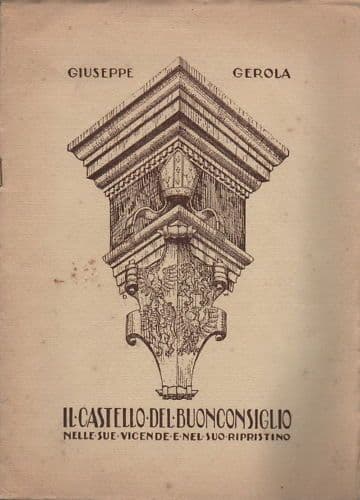 Giuseppe Gerola Il castello del Buonconsiglio *nelle sue vicende e nel suo ripristino* Trento, Quaderno rivista Trentino, 1931 n. 7 Cm. 28, pp.35, bross. edit.figurata. Interessante edizione originale antica e d'epoca, bella pubblicazione riccamente illustrata, che documenta la storia e le vicende del noto castello triestino, *ma pubblicazione essenzialmente di documentazione fotografica,* *con immagini di opere d'arte e di prospettive architettoniche, tra cui* *una veduta del Buonconsiglio da un dipinto del pittore G. Wenter Marini,* *ritratti di vescovi,* *Castelvecchio in un disegno del Dürer e in un antico ricamo e in disegni prospettici antichi,* *immagini di esterni ed interni del Castelvecchio (anche prima dei restauri)* *affreschi del Dossi e Romanini e del Fogolino* *grande stufa* *terrecotte del Zacchi* *stucchi e soffitto* *foto di Battisti dopo la sentenza* *picchiotto del Grandi per il Buonconsiglio* *vedute varie del Buonconsiglio, con anche cucina e cappella, camera delle udienze, Camin nero,* *sala dei ricordi del Battisti* *la Stua della libreria e le raccolte numismatiche* *la sala delle raccolte archeologiche* *polifera e cortile* *logge e chiesa del Castelvecchio* *.....* *la copertina anteriore è illustrata con uno schizzo di Dario Wolf, raffigurante un particolare monumentale con anche insegne araldiche* Di interesse specialistico storico-locale artistico architettonico bibliografico Buona conservazione generale, segni e difetti d'uso e d'epoca, sparse fioriture, ossidazioni ai punti di chiusura della legatura.