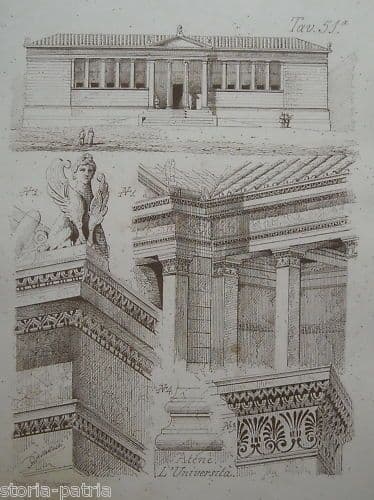 Stampa Litografica Università Di Atene Grecia 1870 Kirchmayr