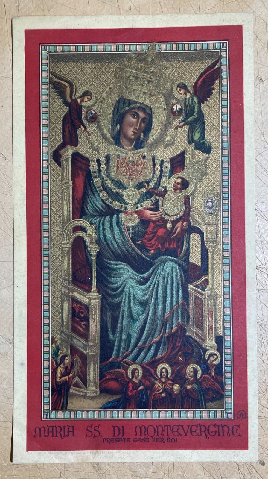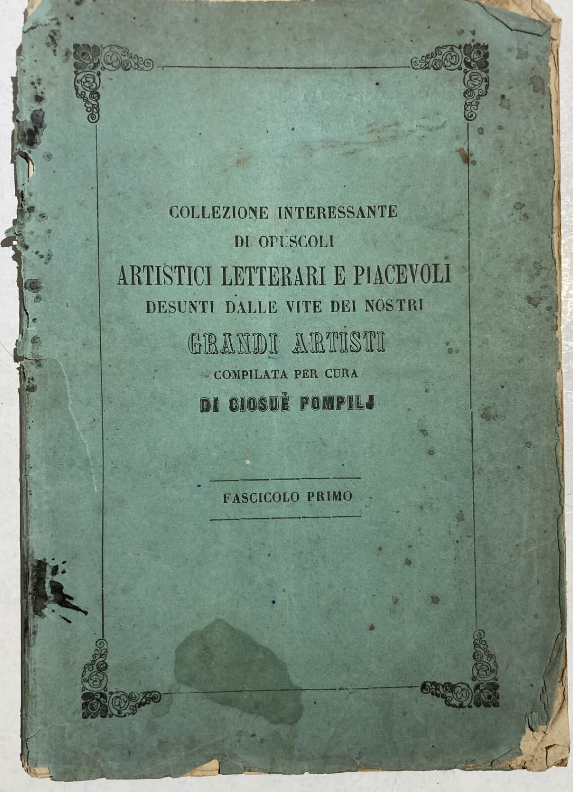**San Benedetto**. Interessante placchetta sbalzata raffigurante l'iconografia del celebre Santo, venerato presso l'Abbazia di *Monte Cassino*. * **Materiale**: Metallo bianco (probabile ottone argentato) lavorato a sbalzo. * **Supporto**: Base originale in materiale tartarugato. * **Dimensioni**: Diametro placchetta 3 cm circa; supporto 5 x 3,5 x 0,5 cm. * **Epoca**: Prima metà del XX secolo (circa anni '20). L'oggetto presenta una discreta conservazione generale con segni d'uso e del tempo, inclusi residui di polvere, ossidazioni e leggere abrasioni superficiali. Il supporto potrebbe essere stato parte di una montatura devozionale più complessa. Si consiglia intervento di pulitura professionale.