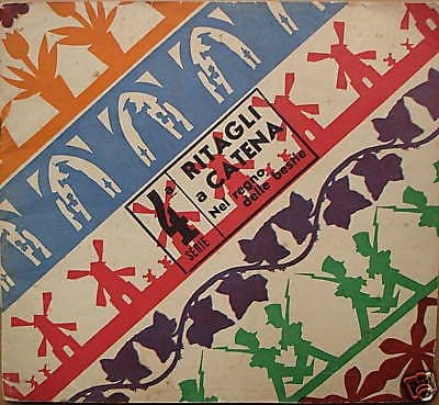 Ritagli a catena **Nel regno delle bestie** 4a Serie Brescia, La Scuola, 1939 Cm.22,5x25 circa; pp.24; bross. edit. figurata Rara e curiosa pubblicazione d'epoca, un albo con figure da ritagliare, con modelli creati da O. Brambilla - B. Tomba appartenenti alla serie brevettata de "***Il ritaglio ornamentale e il mosaico di carta".*** Presenti le istruzioni per i "ritagli a catena"....con cui si potranno ottenere particoli e suggestivi risultati creativi e ottici.  Le figure illustrate sembra che siano state ottenute con originale processo di stampa tipolitografica (o altro simile, forse serigrafia o xilografia o con linoleum). Di interesse culturale specialistico e bibliografico Buona conservazione generale, segni e difetti d'uso e d'epoca.