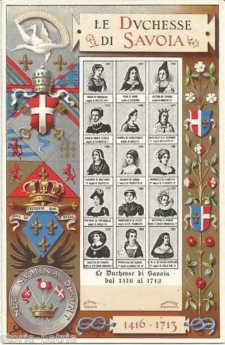 Cartolina Antica Duchesse Di Savoia 1416 1713 Cromolitografia