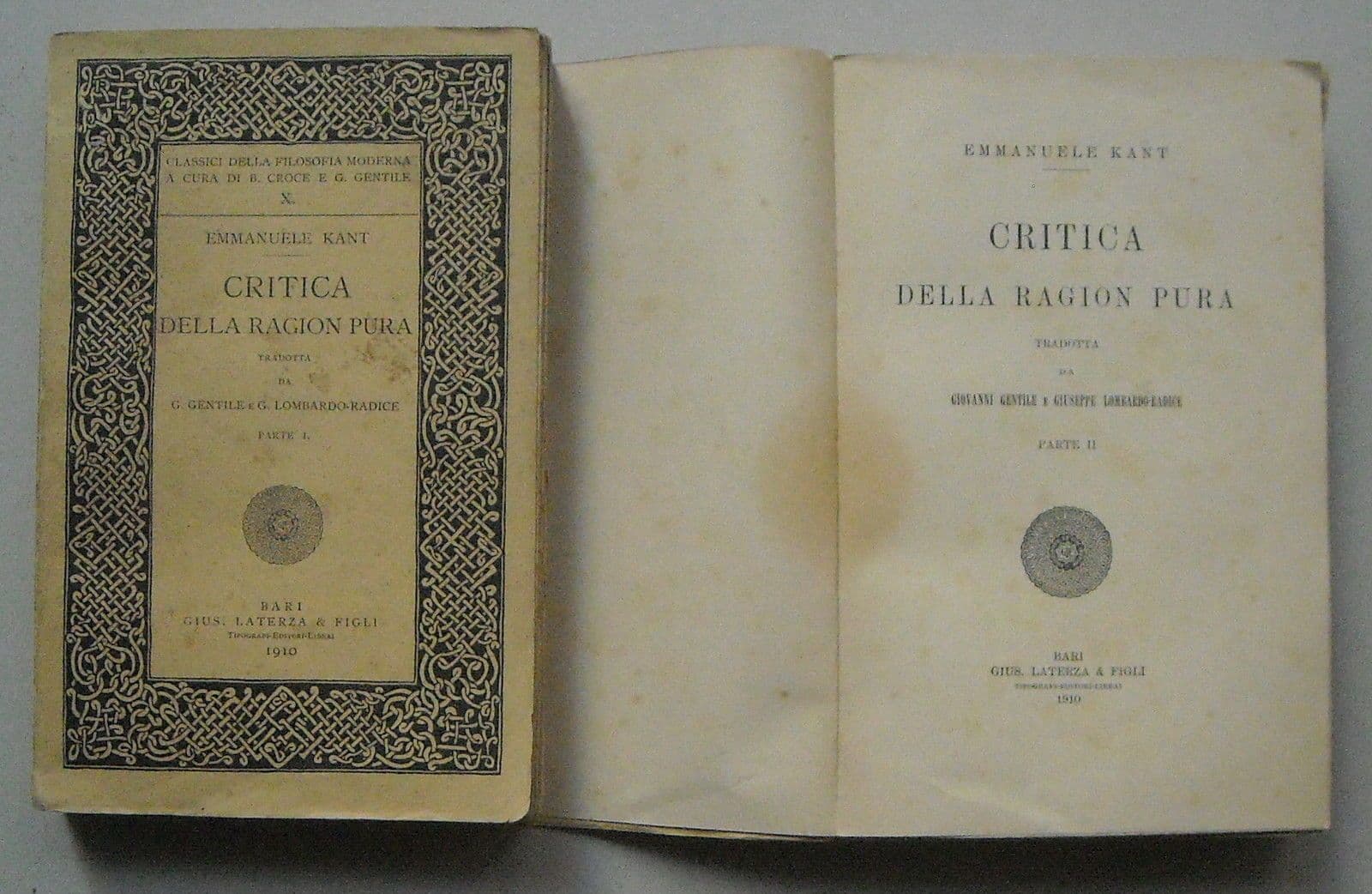 Critica Della Ragione Pura Kant Laterza 1910 Due Volumi Gentile