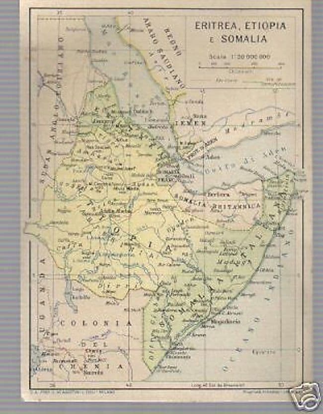 Eritrea, Etiopia e Somalia Interessante e antica cartolina pubblicitaria, con al recto una mappa geografica delle colonie italiane in Africa, e al verso la pubblicità di varie specialità medicinali prodotte dalla milanese Chatelain. misura cm. 15x10,5; mappa a cura della De Agostini (Milano); 1935-36 Di interesse geografico, cartografico, collezionistico Buona conservazione generale, usuali segni d'uso o d'epoca.