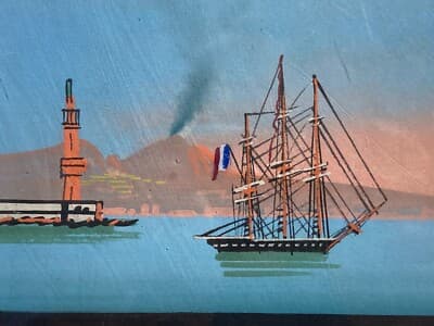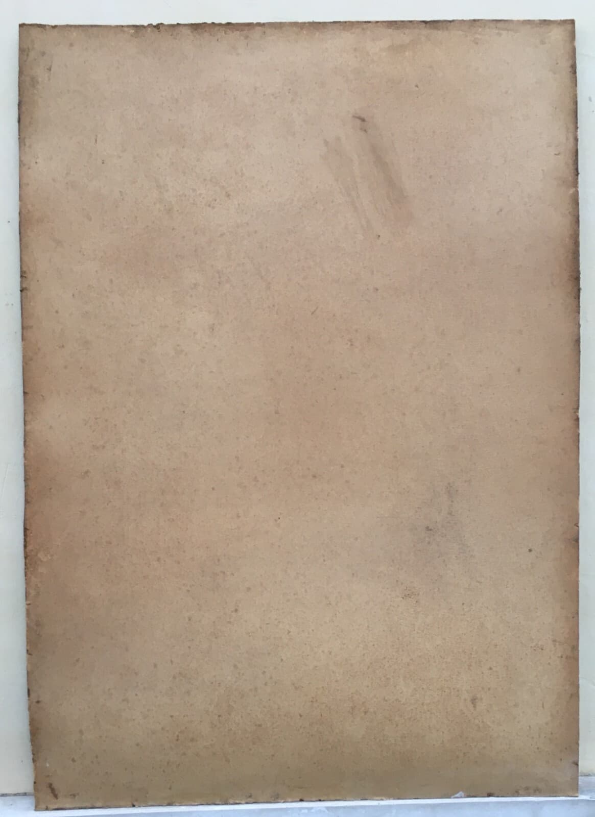 Interessante complemento d'arredo: un candelabro a due fiamme dal design stilizzato. Realizzato in **peltro** (Peltro Puro 95%) con finitura martellata o zigrinata, l'oggetto si configura come una scultura moderna, richiamando lo stile di designer del calibro di **Giò Ponti** o **Thayaht**. * **Materiale:** Metallo grigio (peltro). * **Marchi:** Sotto la base reca il marchio "Peltro Puro 95%", la dicitura "Made in Italy" e il monogramma del produttore "Peltro M. R.". * **Origine:** Venduto originariamente presso una gioielleria in *Abruzzo*. * **Periodo:** Databile presumibilmente agli anni '50-'60. * **Dimensioni:** Altezza massima 39 cm; ampiezza massima 28x22 cm.