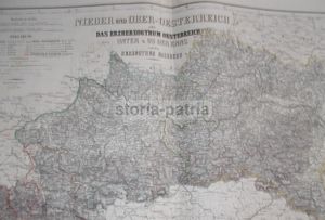 La cartografia presenta innumerevoli toponimi in lingua tedesca e confini territoriali rifiniti con coloritura coeva a mano.