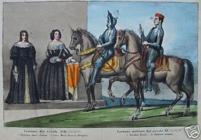 Costumi Militari Secolo XV XVII Orsini Aspesi Litografia 1800