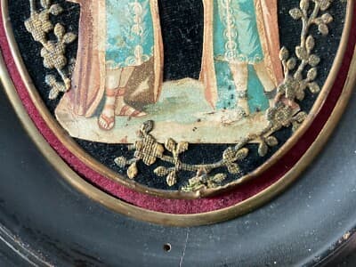 Evocativa stampa a colori con motivi di gusto classico-mitologico, illustrazione pubblicitaria per il noto liquore **Corfinio** prodotto dalla distilleria abruzzese **Barattucci**, con sede in *Chieti*. Stampa di piccole dimensioni e forma irregolare (circa cm 8,5x30), impressa su carta al recto con verso bianco. Il pezzo era originariamente destinato all'uso come etichetta da bottiglia; si presenta mai applicato, in condizioni di fondo di magazzino. Esemplare databile alla metà del XX secolo (circa 1920-1950), di notevole interesse per la storia locale abruzzese e il collezionismo pubblicitario d'epoca. **Stato di conservazione:** Discreto, con segni del tempo. Si segnalano sparse fioriture e bruniture e usuali difetti marginali. Opera idonea per essere montata sotto passe-partout e incorniciata.
