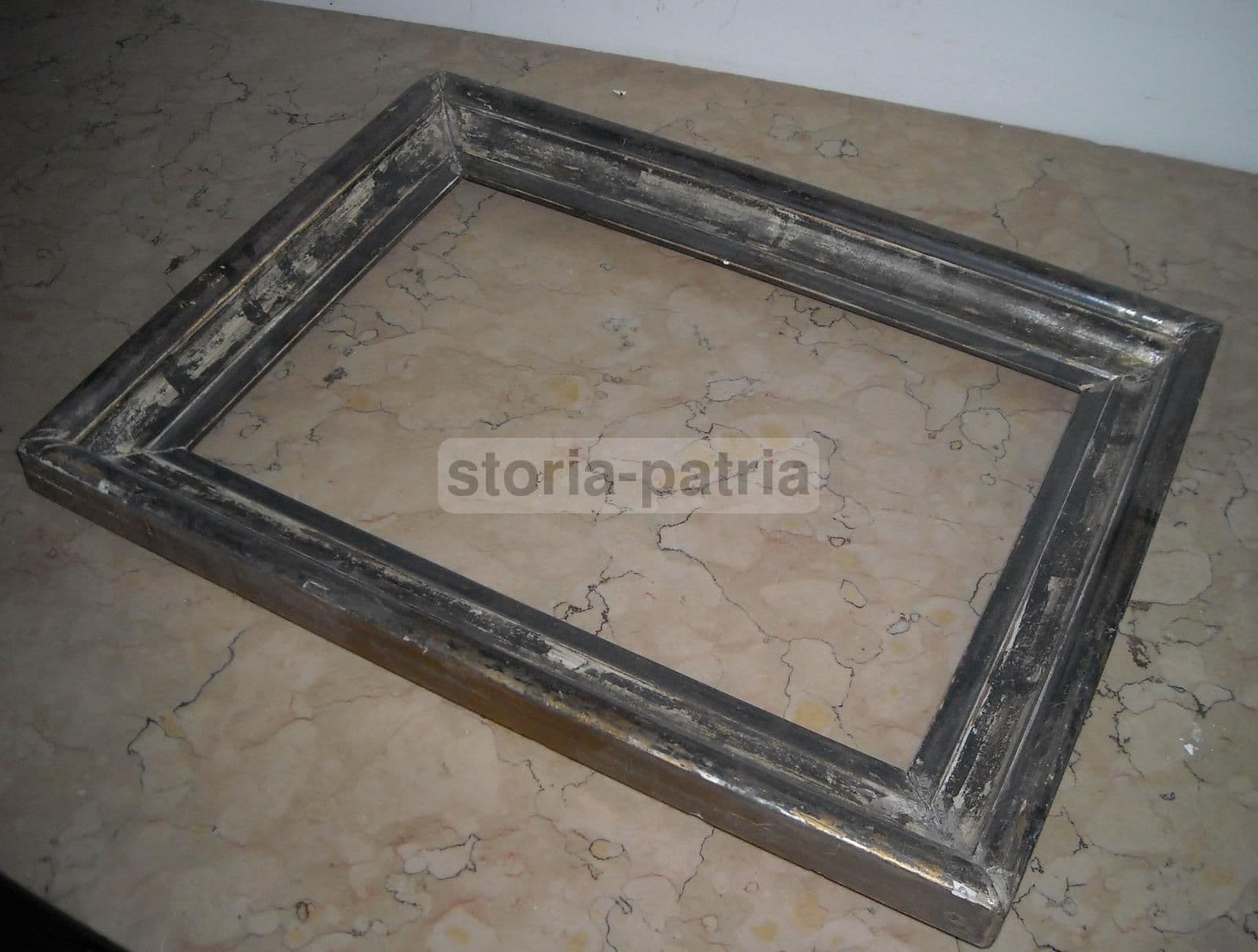 Interessante antica cornice sobria e lineare, con bella modanatura della fascia, *utile per inserirci dipinti o tempere o gouaches o disegni o incisioni e stampe, ma anche ricami e altre opere d'arte sia antiche che moderne,* *come pure ben utilizzabile come specchiera, inserendoci uno specchio;* ovunque collocabile, sia in orizzontale che in verticale; ottime utili dimensioni, misura circa cm.43x31,5 (massime dimensioni esterne), circa cm. 33x22 (dimensioni dell'interno o luce); fascia circa cm.5x3,5; supporto in legno, con usuale gessatura utile per l'argentatura (e l'eventuale successiva meccatura); databile presumibilmente tra fine '800 e primo '900. Utilissima, decorativa, da collezione Discreta conservazione generale, segni e difetti d'uso e d'epoca, abrasioni o scorticazioni e sbeccature lungo la fascia e agli angoli, difetti al supporto ligneo, l'originale argentatura spatinata forse per una antica sverniciatura, comunque di bell'effetto sia per la brunitura diffusa sia per le zone chiare dovute alla gessatura di base, eventualmente da pulire meglio o restaurare o da ripristinare l'originaria meccatura, ma anche così molto fascinosa nel suo vissuto, e facilmente utilizzabile e collocabile per le sue graziose dimensioni. *(le immagini allegate raffigurano particolari dell'intero oggetto, eventuali ulteriori informazioni a richiesta)* *(295)*