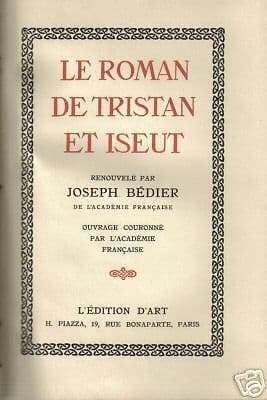 **JOSEPH BEDIER** **LE ROMAN DE TRISTAN ET ISEUT** Paris, L'Edition d'Art, 1922 Cm.18, pp.223, bross. edit. conservata e legatura in mezza pergamena. Interessante pregevole edizione d'epoca, in lingua originale francese, opera premiata dall'Accademia di Francia; una introduzione dell'editore precisa che la ricostruzione di questa celebre leggenda è stata intrapresa dal Bedier su iniziativa di M.Piazza. BELLE INIZIALI FIGURATE CON MOTIVI VEGETALI ALL'INIZIO DI OGNI CAPITOLO OPERA DI GRANDE INTERESSE CULTURALE E BIBLIOGRAFICO Bella conservazione generale, usuali segni d'uso o d'epoca. **@@@@@@** **IMPORTANTE** **INVITO A FARE OFFERTE SOLO SE VERAMENTE INTERESSATI ALL’ARTICOLO,** **e per ogni dubbio in merito chiedere ulteriori informazioni e immagini solo durante l’asta.** **Per facilitare ed accelerare la spedizione, indicare sempre nella causale del pagamento il titolo dell’oggetto acquistato.** **Il pagamento deve essere effettuato entro 3 giorni lavorativi dalla data di chiusura dell'asta (dilazioni di tempo devono essere concordati, salvo per più acquisti a scadenza diversa), in caso contrario chiederò ad Ebay il rimborso delle commissioni e vi segnalerò come *OFFERENTE NON PAGANTE* lasciandovi un feedback negativo.** **Normalmente e salvo imprevisti spedisco entro il giorno successivo alla ricezione del pagamento.** **Effettuo solo spedizioni certificate da ricevuta (posta raccomandata, pacco normale o celere, corriere) e pertanto evitate di chiedermi spedizioni in posta prioritaria o ordinaria (metodi non sicuri).** **Ogni spedizione viaggia a totale rischio dell’acquirente, che però può cautelarsi indicando un metodo di spedizione o un corriere di sua scelta e gradimento.** *\======* *I INVITE TO WATCH THE OTHERS MY AUCTIONS* Creato da [Turbo Lister](https://pages.ebay.it/turbo_lister/)
